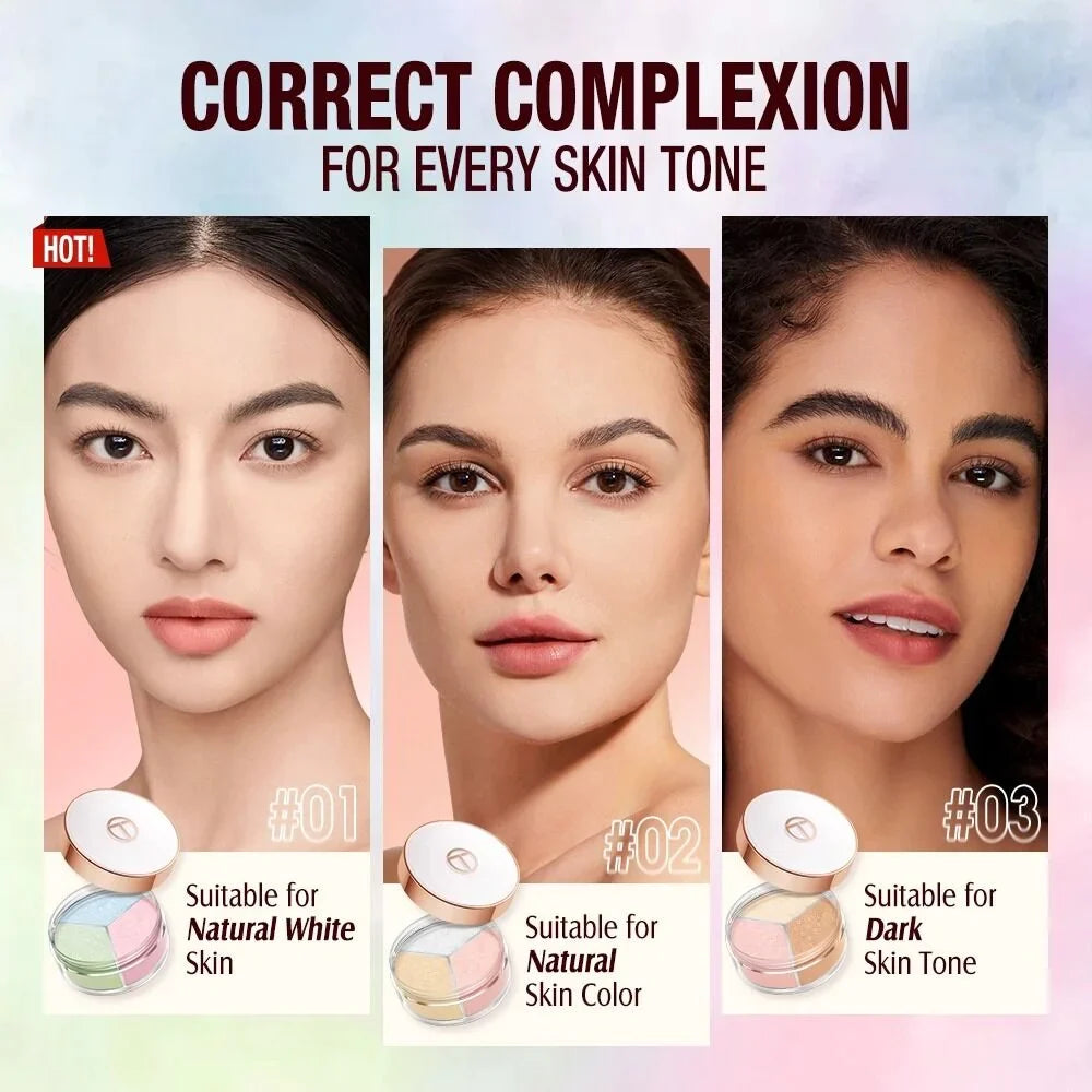 ✨Three colors interweave to fix and lock makeup. The palette carries three colors of loose powder and can blend naturally to modify the skin tone. As light as the wind, it can bring a smooth skin feeling. A pat can hide the shiny oil, soften the pores, set the makeup for a long time, and create uniform and transparent makeup.